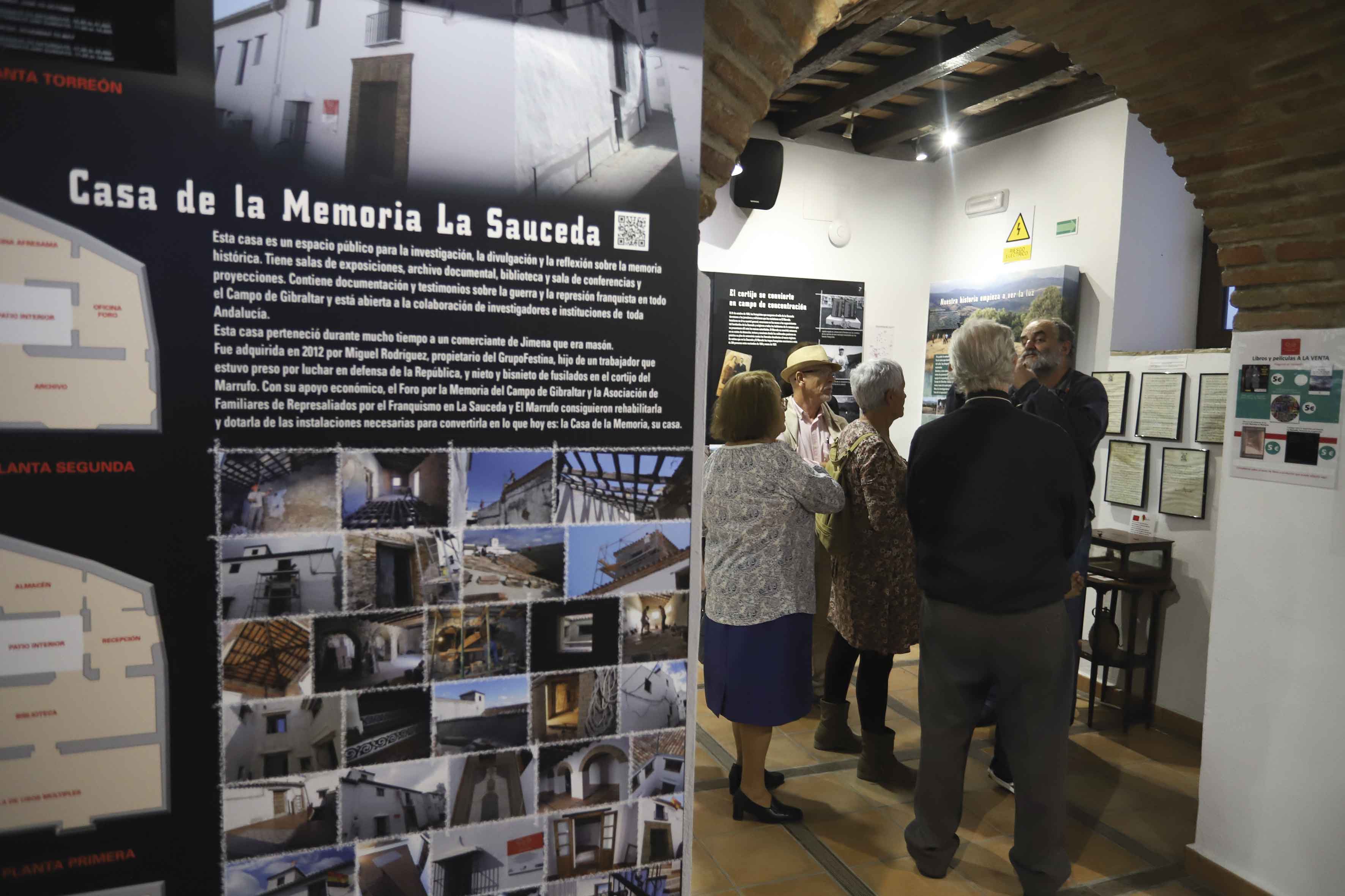 Promovida y gestionada por el Foro por la Memoria del Campo de Gibraltar y la Asociación de Familiares de Represaliados del Franquismo en La Sauceda y El Marrufo, la Casa de la Memoria de Jimena abrió sus puertas en 2016, tras unos intensos trabajos de rehabilitación. El inmueble (que durante la dictadura había pertenecido a Juan Ferrer, un comerciante ferretero que también fue masón y que había estado nueve años en la cárcel) fue adquirido en estado ruinoso en 2012 por el empresario linense Miguel Rodríguez, propietario del Grupo Festina, hijo de un trabajador que estuvo preso por luchar en defensa de la República, y nieto y bisnieto de fusilados en el cortijo del Marrufo.